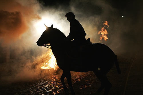 Au coeur de l'Espagne, dans le village de San Bartolome de Pinares parsemé de bûchers illuminant la nuit, une centaine de cavaliers ont jeté mercredi soir leurs montures par dessus des flammes, célébrant un étrange rite purificateur.