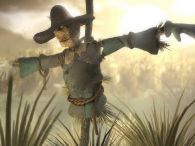 Cette dame épouvantail est bien élégante avec sa belle robe rose assorti de son écharpe en tulle, elle a même des cheveux... Deux couettes de paille nouée de chaque coté de la tête, il ne manque plus qu'un franc sourire sur le visage de cette charmante dame
